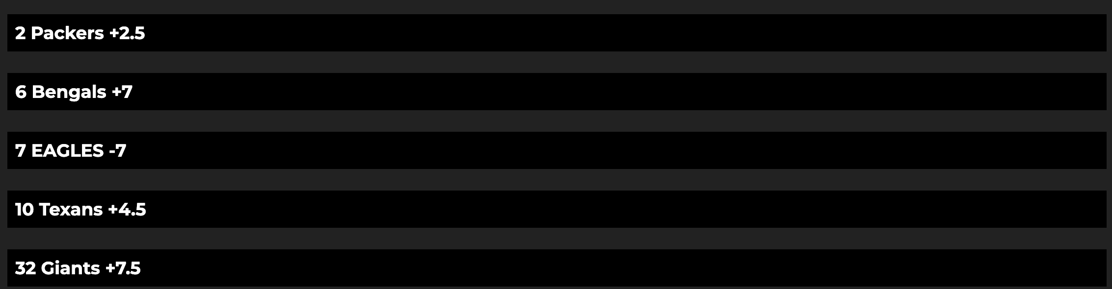 I went 3-1-1 last week, not that it mattered, but it was nice to have a good week and feel like I’m in touch with the flow of the league. The one game I lost was the Chiefs -3.5, and they had the ball at the goal line to win by four before settling for the field goal, winning in OT and losing the cover by half a point.