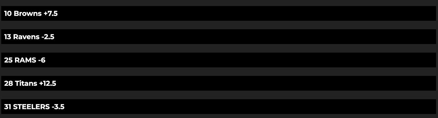 I was on the Bears initially — I’m finally convinced they’re decent even though the Packers (barely) covered against them last week. But I asked Grok which teams it liked, and after it churned out garbage based on hacks and touts, I prompted it to think for itself based on game data, and one of the ones it liked was the Browns (others: Jets, Raiders, Ravens, Titans.) I started to come around after thinking about it more. In cold weather, it might be more of a smash mouth game, which lowers the scoring. And from what I’ve seen so far, Shadeur Sanders might actually be good and should be expected to get better each week with experience.